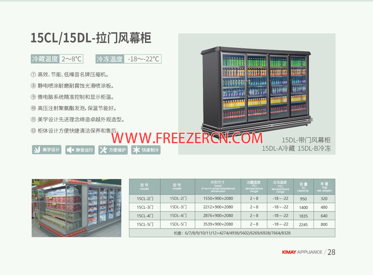 ■ 内置风幕带有脚轮,移动、使用两方便;无氟环保制冷剂,环境破坏系数为零,真正实现绿色环保;