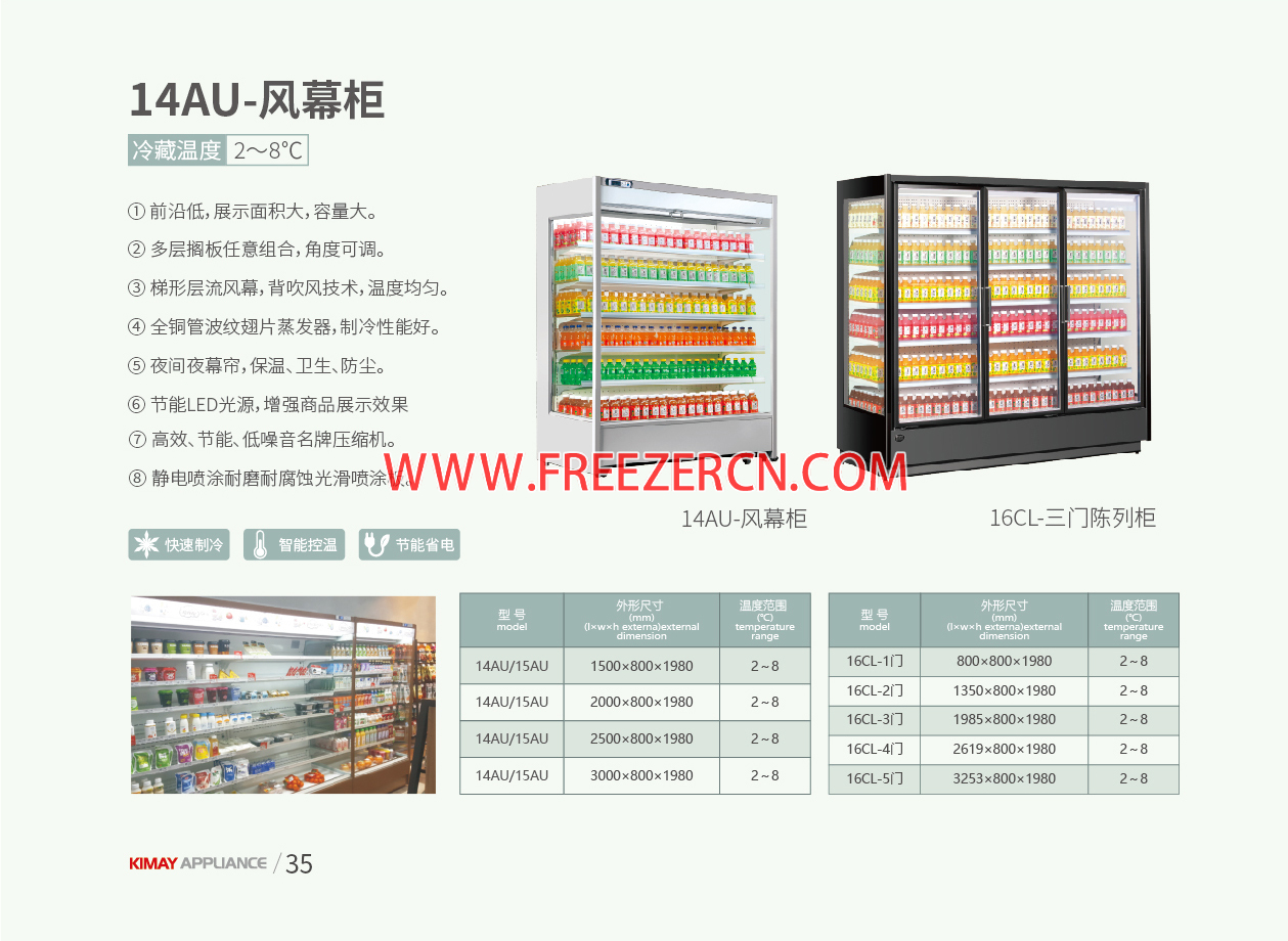 ■ 内置风幕带有脚轮,移动、使用两方便;无氟环保制冷剂,环境破坏系数为零,真正实现绿色环保;